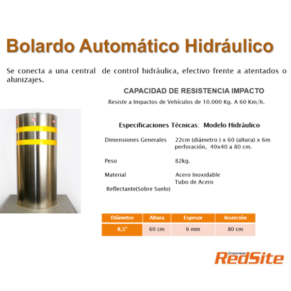 Kit de Bolardos Hidráulicos RSBO-220 Hidráulicos 3 bolardos de 22cm de diámetro. Incluye su central de control, botonera y control remoto.